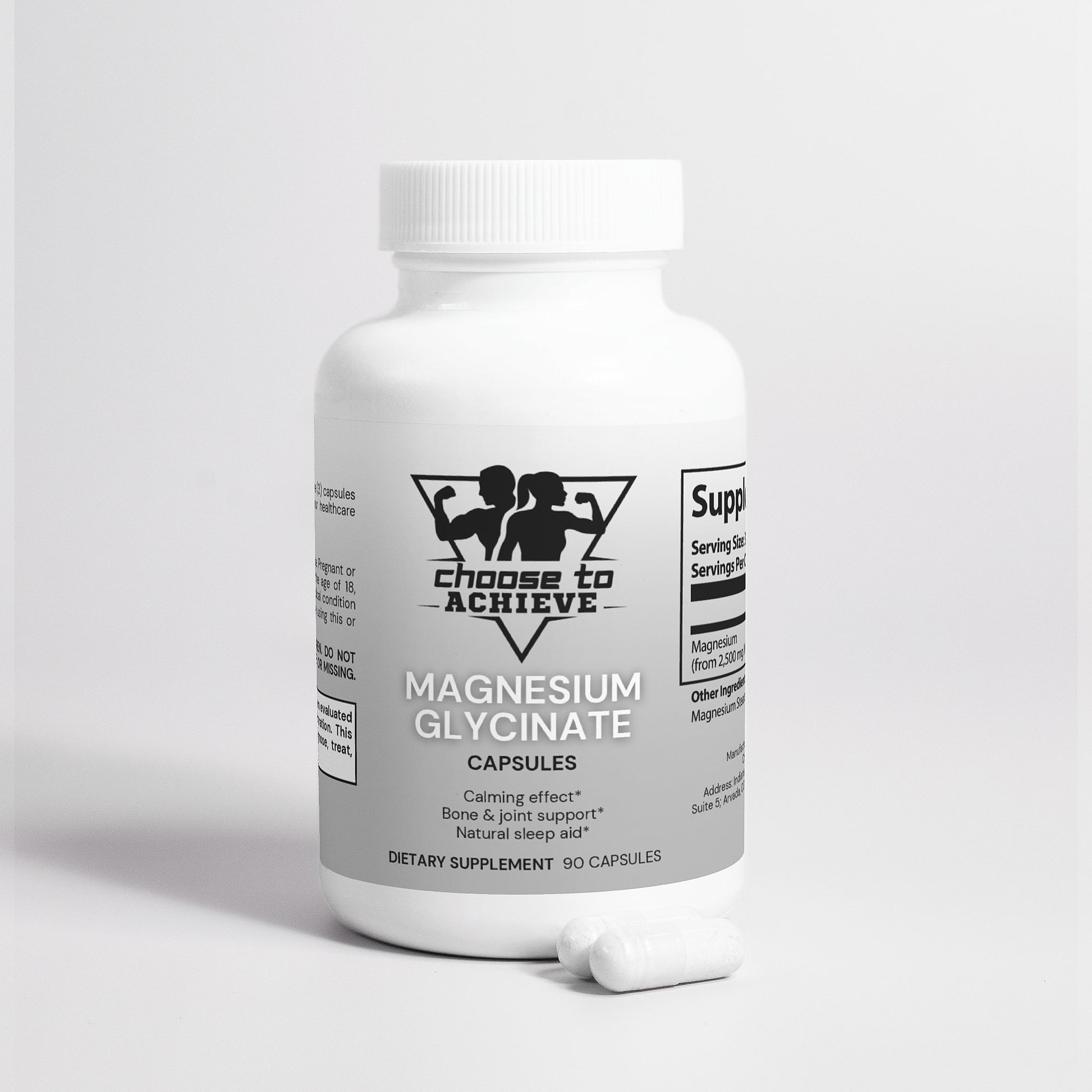 Ingredients: Magnesium (from 2.500mg Magnesium Glycinate), Hypromellose (capsule), Magnesium Stearate, Silicon Dioxide, Rice Flour.